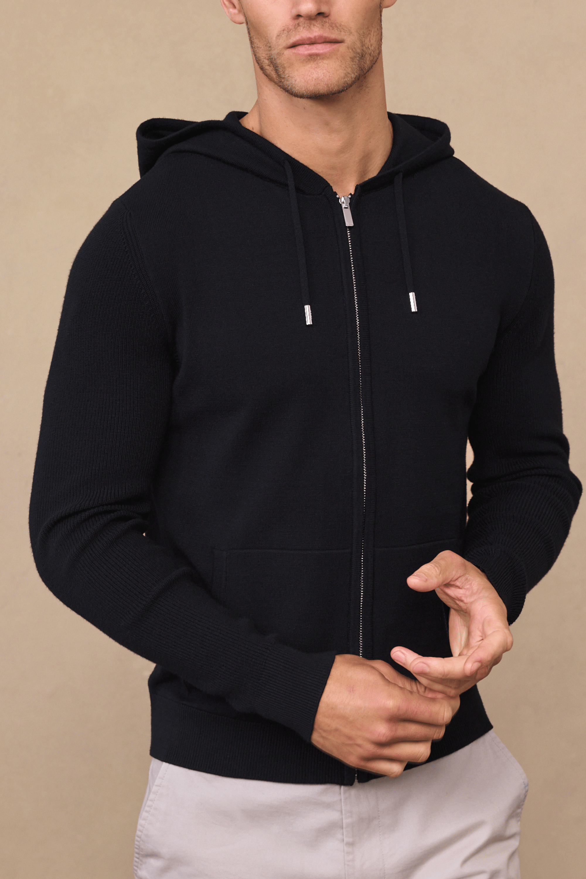 Nolan Knitted Zip Through Hoodie - Black